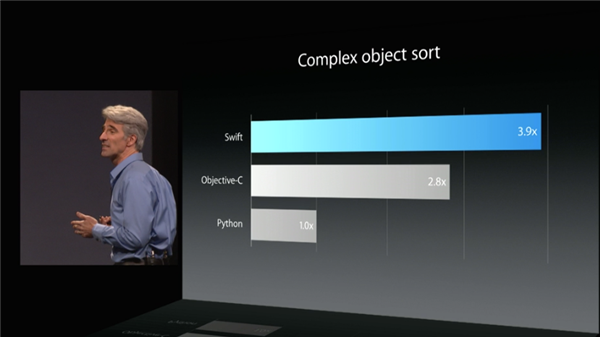 Fast. Swift was built with performance in mind. Not only does its simple syntax and hand-holding help you develop faster, it also lives up to its name: as stated on apple.com, Swift is 2.6x faster than Objective-C and 8.4x faster than Python.