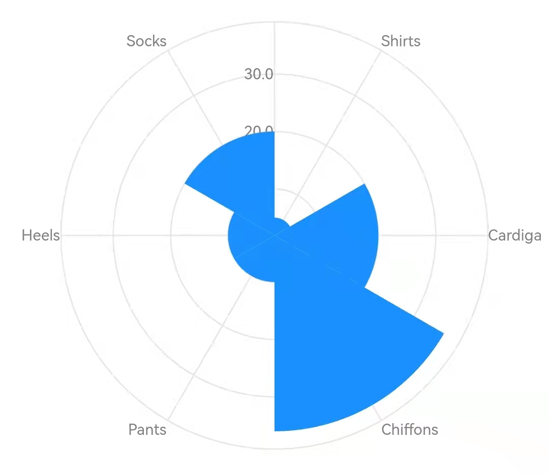 For numbers, The default LinearScale will determine the range by input data, so the range minimum may not be 0. For a bar chart, this makes the chart focus on height differences of bars. But it is not fit for the rose chart, because people tend to regard radius ratios as value ratios.