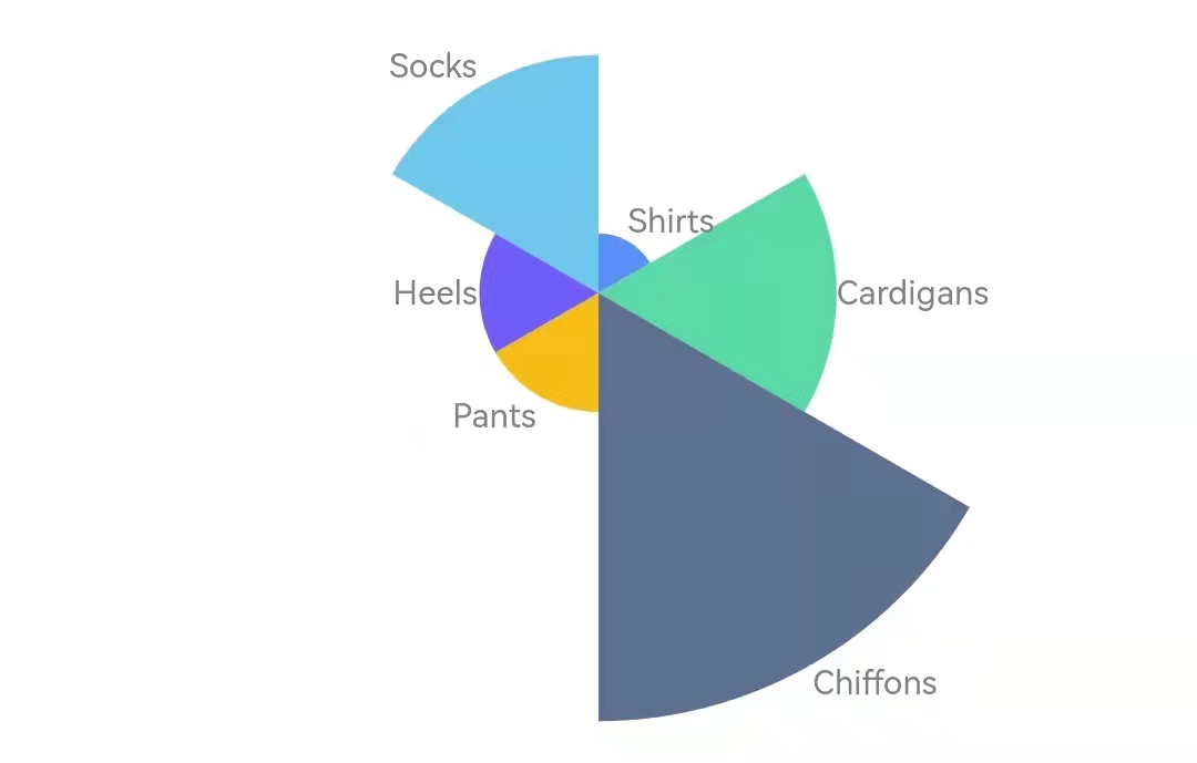 The second problem is, since the sectors are adjacent, their colors should be distinguishable. And people prefer to use labels, not axis, to annotate the rose chart.