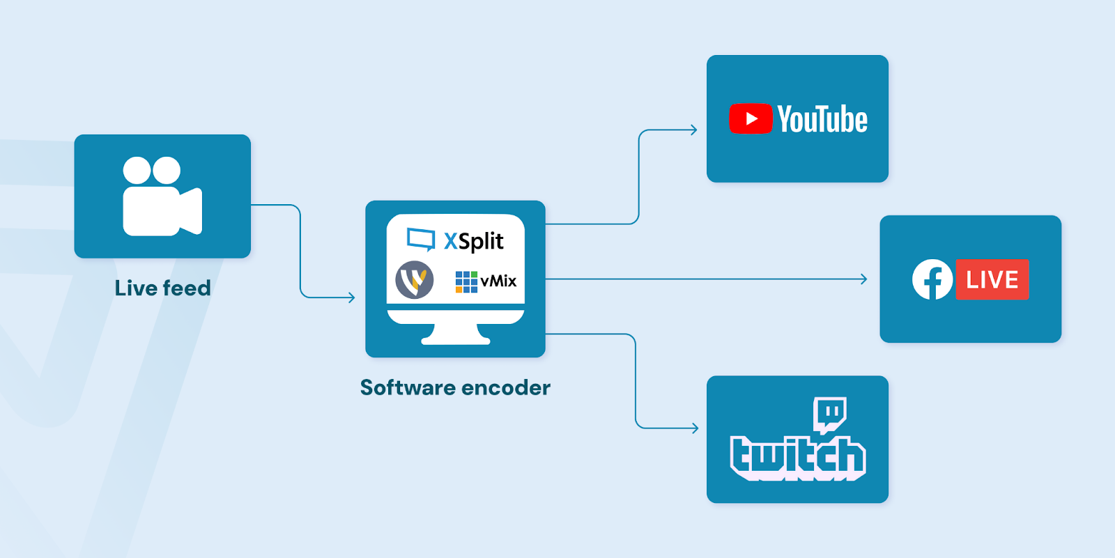 Multistreaming is the broadcast of one live stream to multiple platforms. Rather than live on only YouTube or only Twitch, your single stream streams to both — and any other platform you deem convenient — at the same time. You’re making the same broadcast available to viewers on either platform, just using whichever app or site they’re already on.