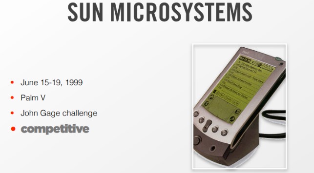The OpenBSD participants decided to join forces with the Sun Microsystems marketing team a few days later to carry out a competitive event called the "John Gage Challenge" from June 15–19, 1999.