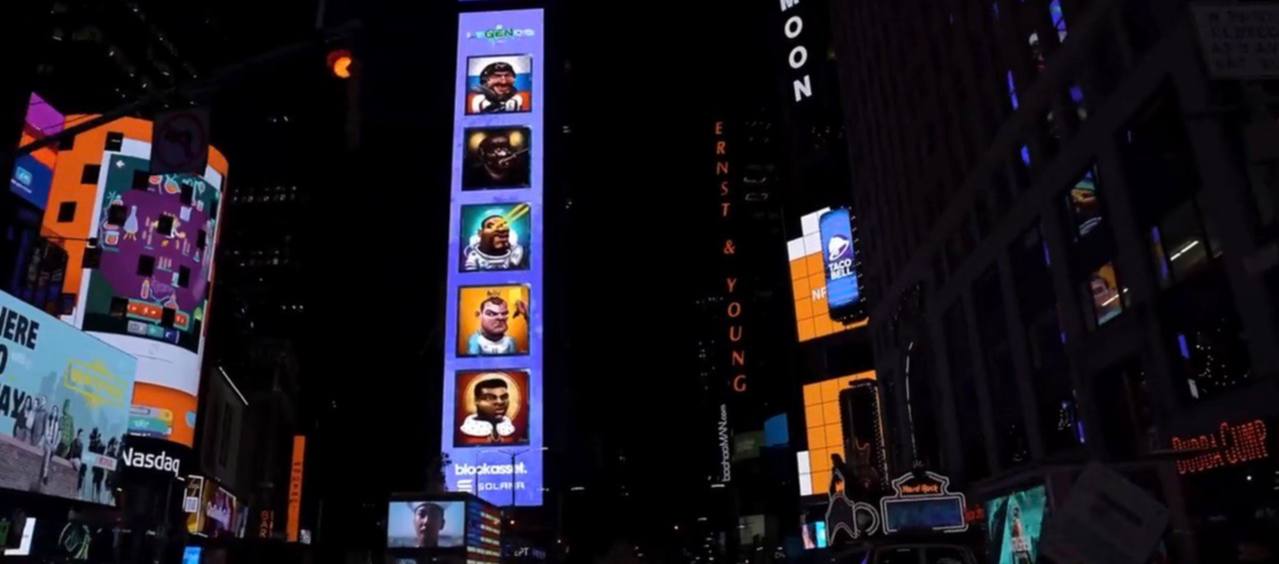 The official drop took place on the 4th of November 2021 in Times Square, New York, where the artworks featuring the five legends lit the city up from one of the Countdown screens.