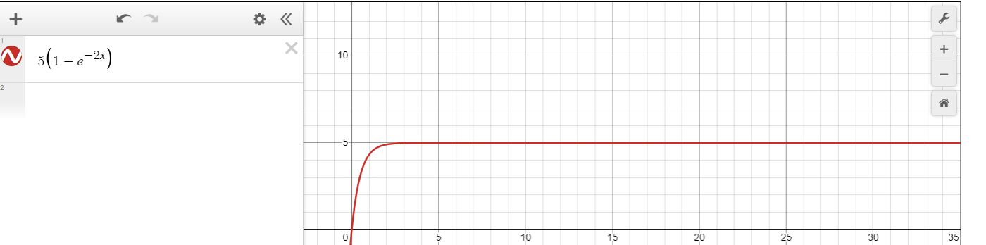 Taking A_0 = 5 and λ = 2, it is the same deal with us modelling y = 5 (1 - e^(-2x) ), hence a similar graph.