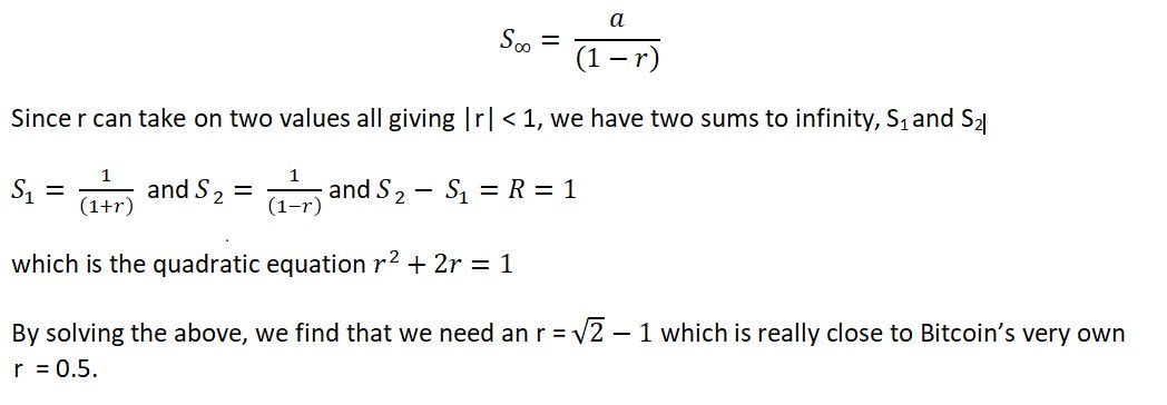 From https://en.wikipedia.org/wiki/Geometric_series the following are related to the Bitcoin halving;