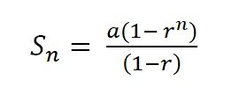 - The decay of radioactive carbon-14 atoms, where the common ratio r is defined by the half-life of carbon-14.