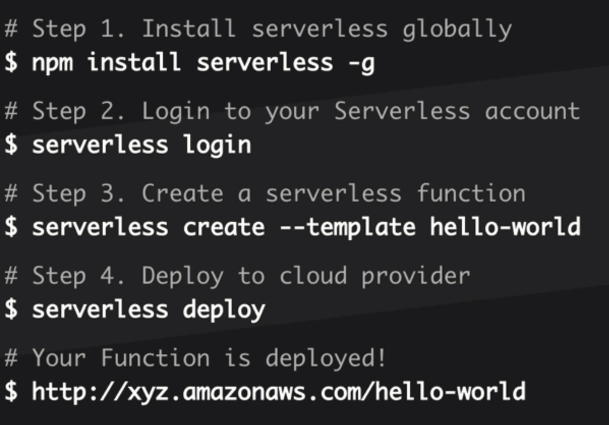 Deploying an application using Serverless Framework (source: serverless.com)