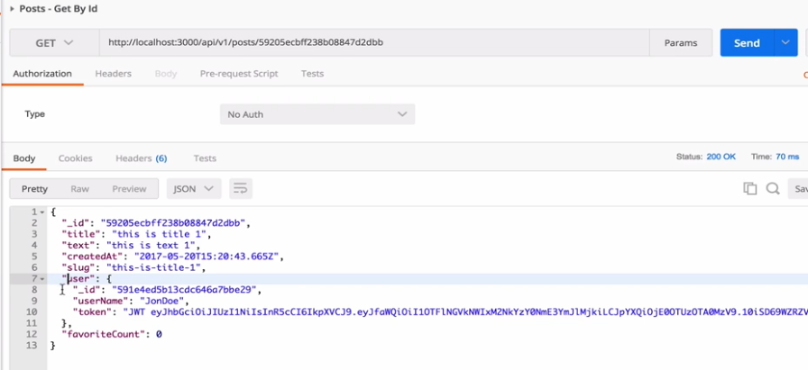 Move to the post.controller.js file now and modify the getPostById function: