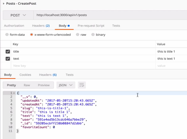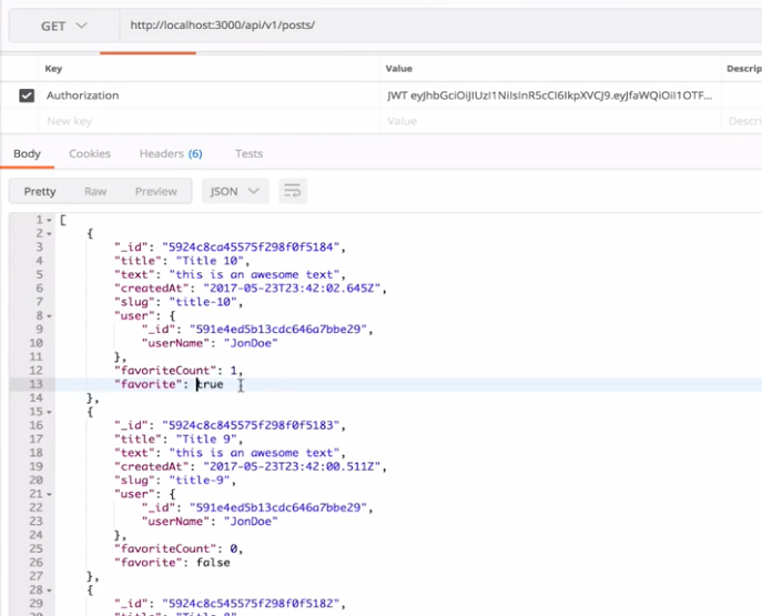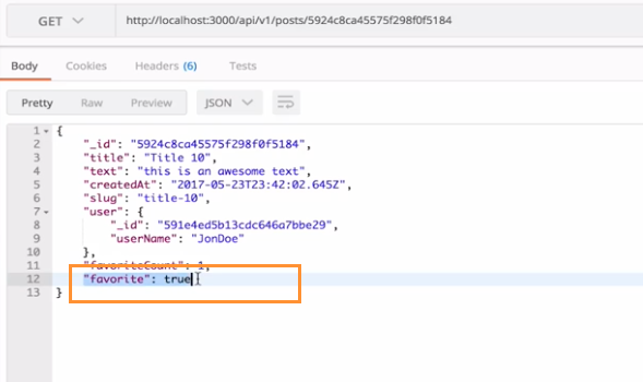 If you hit the same API again and again, the result won’t change. Excellent! We have working APIs where a user can favorite a post as well.