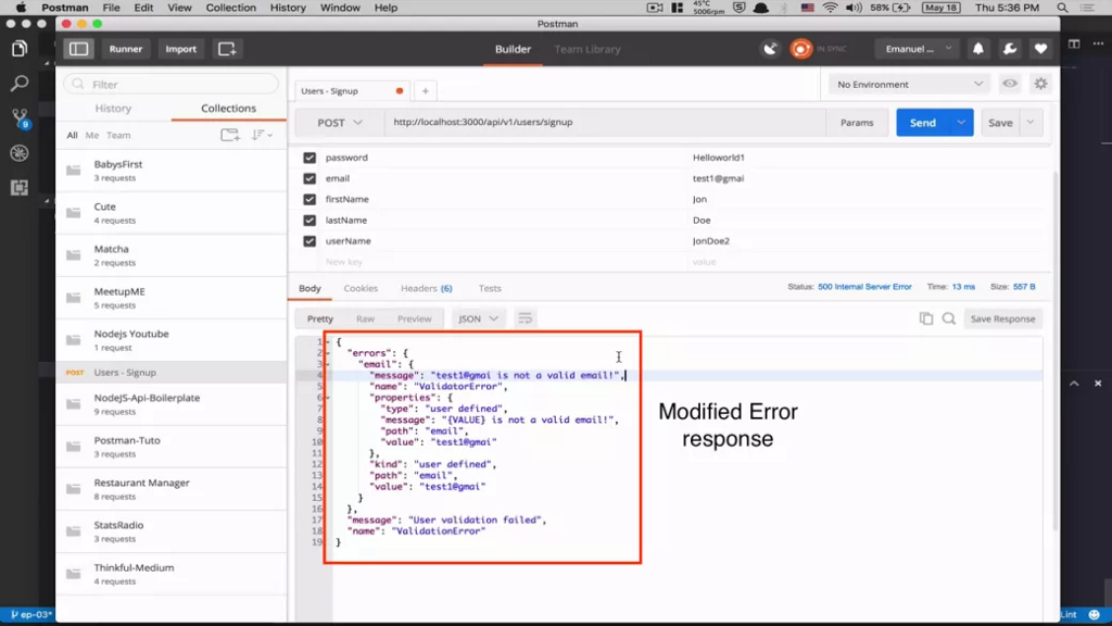Beginner API development in Node, Express, ES6, & MongoDB