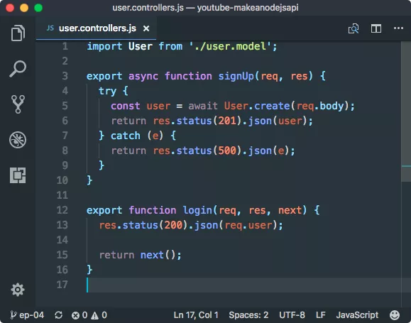 Let’s add a function here as well to use this functionality we defined in the model. Start by using the import in post.controller.js file: