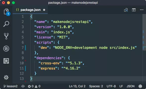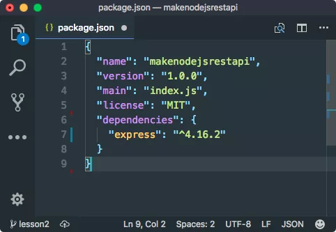 This file just contains the meta-data for our project. Next, we will start adding the express in our project. Run the following command next: