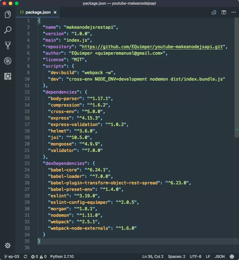 “name”: “makenodejsrestapi”,