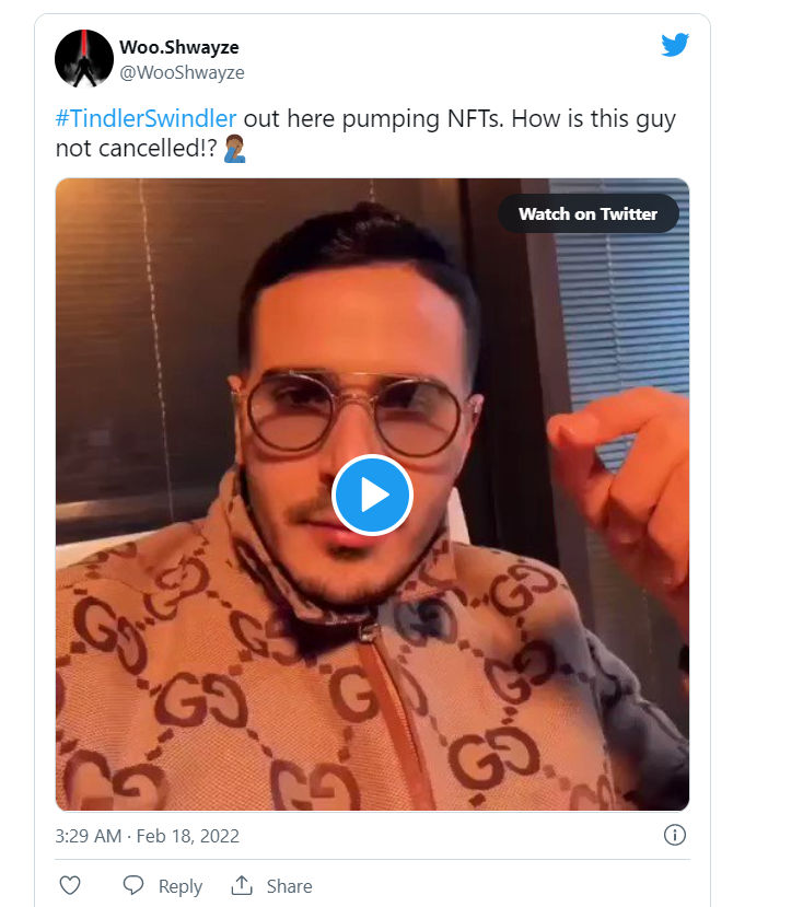 Just listen to this well-known scammer (tell me you’ve watched Tinder Swindler) Simon Leviev telling people not to be surprised to see him driving a Lambo tomorrow because he bought some NFT. He only charges $300 per personal video message and $1,400 for business ones. Not so expensive, after all.