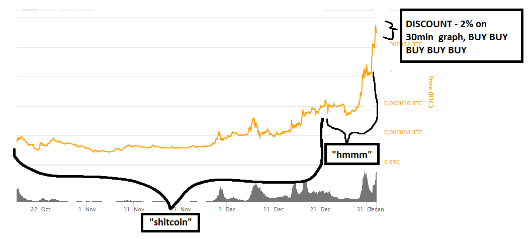 It’s incredibly tempting to chase after a big pump, especially when traditional logic doesn’t always apply. When a coin pumps 100% in a day, you generally expect it to exhale and correct for a little bit before running up again. However as you may have seen with Raiblocks, it was consistently increasing by >30% a day.
