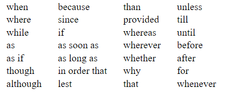 Remember that just as a preposition must be followed by an object to form a phrase, a conjunction must be followed by a subject to form a clause.