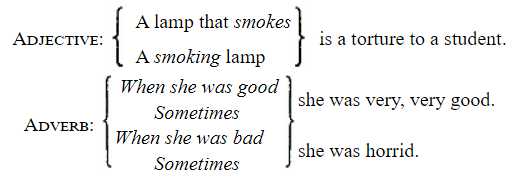 Sentences are classified, also, according to their structure or form. If a sentence has one subject and one predicate, it is a simple sentence. If it is made up of two independent parts, it is a compound sentence. If it has one independent part and one or more dependent parts, each of which contains a subject and a predicate of its own, the sentence is complex. The independent part of the sentence is called a principal clause, and the dependent part is called a subordinate clause. A phrase is also a dependent part of a sentence, but it differs from a subordinate clause in that it contains no subject or predicate. Both phrases and subordinate clauses are used as parts of speech, as nouns, adjectives, or adverbs. Thus we have the following definitions: