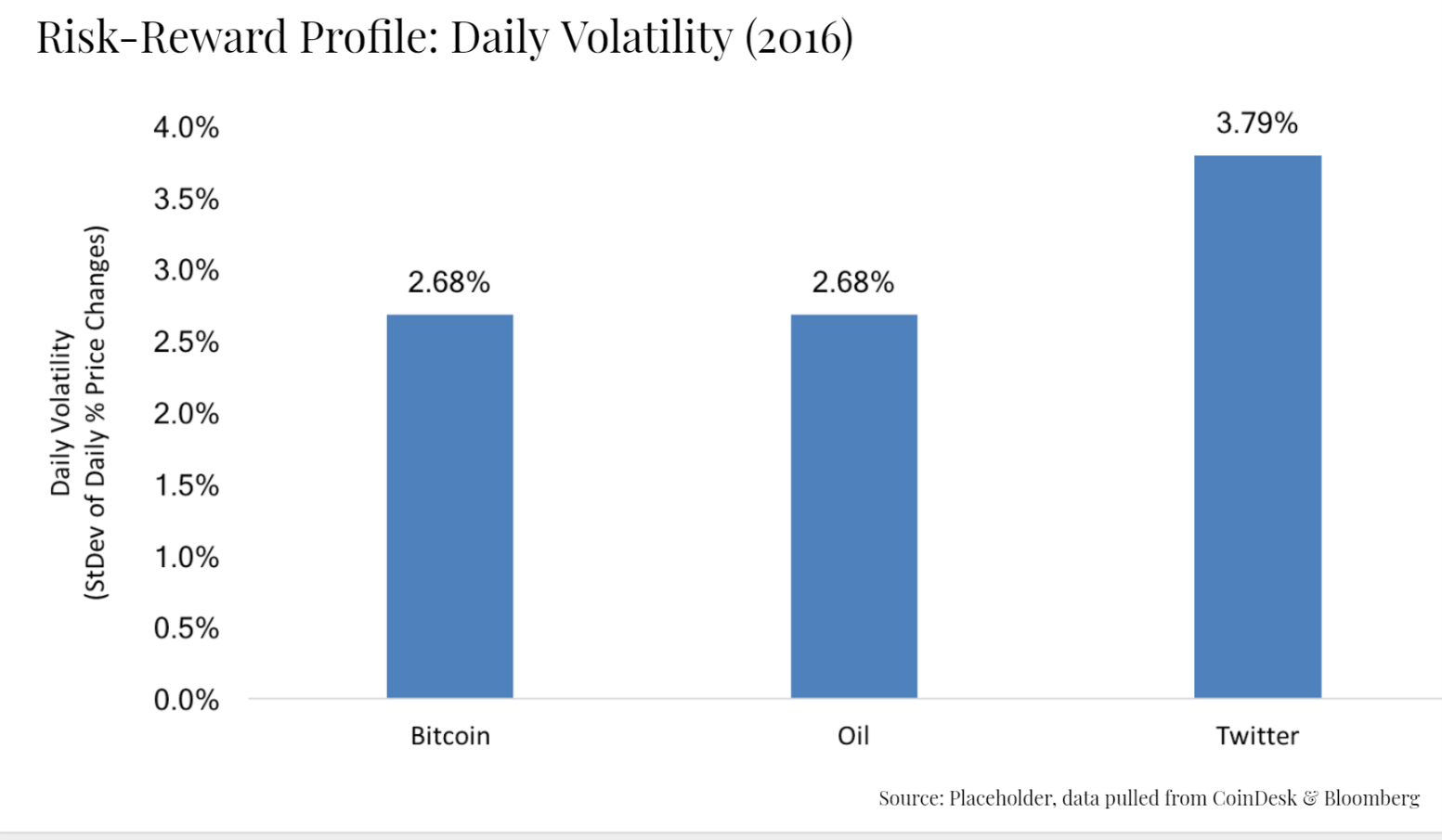 4.a. Daily volatility — Bitcoin in 2016 was less volatile than oil and twitter. If you are able to stomach that volatility, you can stomach Bitcoin.