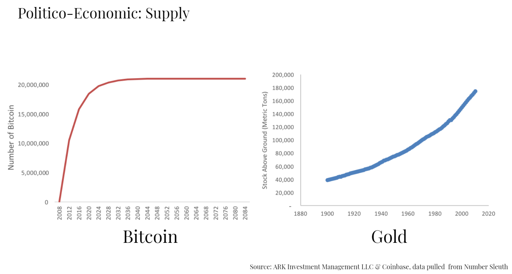 2.a. Supply Schedules — different assets have different supply schedules. Bitcoin is often compared to gold, but it’s even more deflationary than gold because supply is fixed.