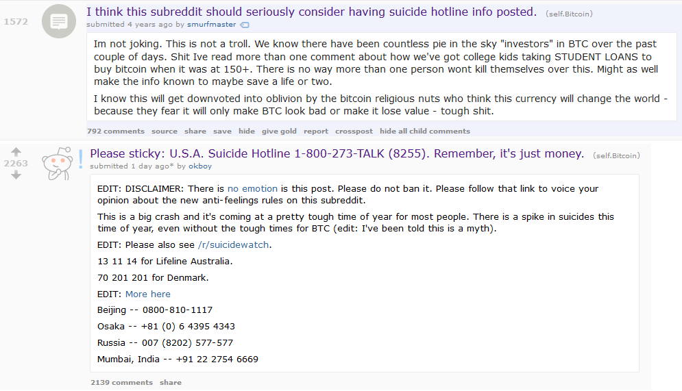 A couple of reddit posts during the 2013 crash
