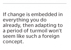 This is a useful checklist all the time, of course, but I try to keep it front and center during periods of rapid change. If change is embedded in everything you do already, then adapting to a period of turmoil won’t seem like such a foreign concept. In my experience, that takes a culture of experimentation and responsibility. When things are going well, innovation tends to offer incremental benefits, but when circumstances demand making big shifts quickly, you need everyone to know it’s incumbent on them to take risks, and that they have the liberty to do so.