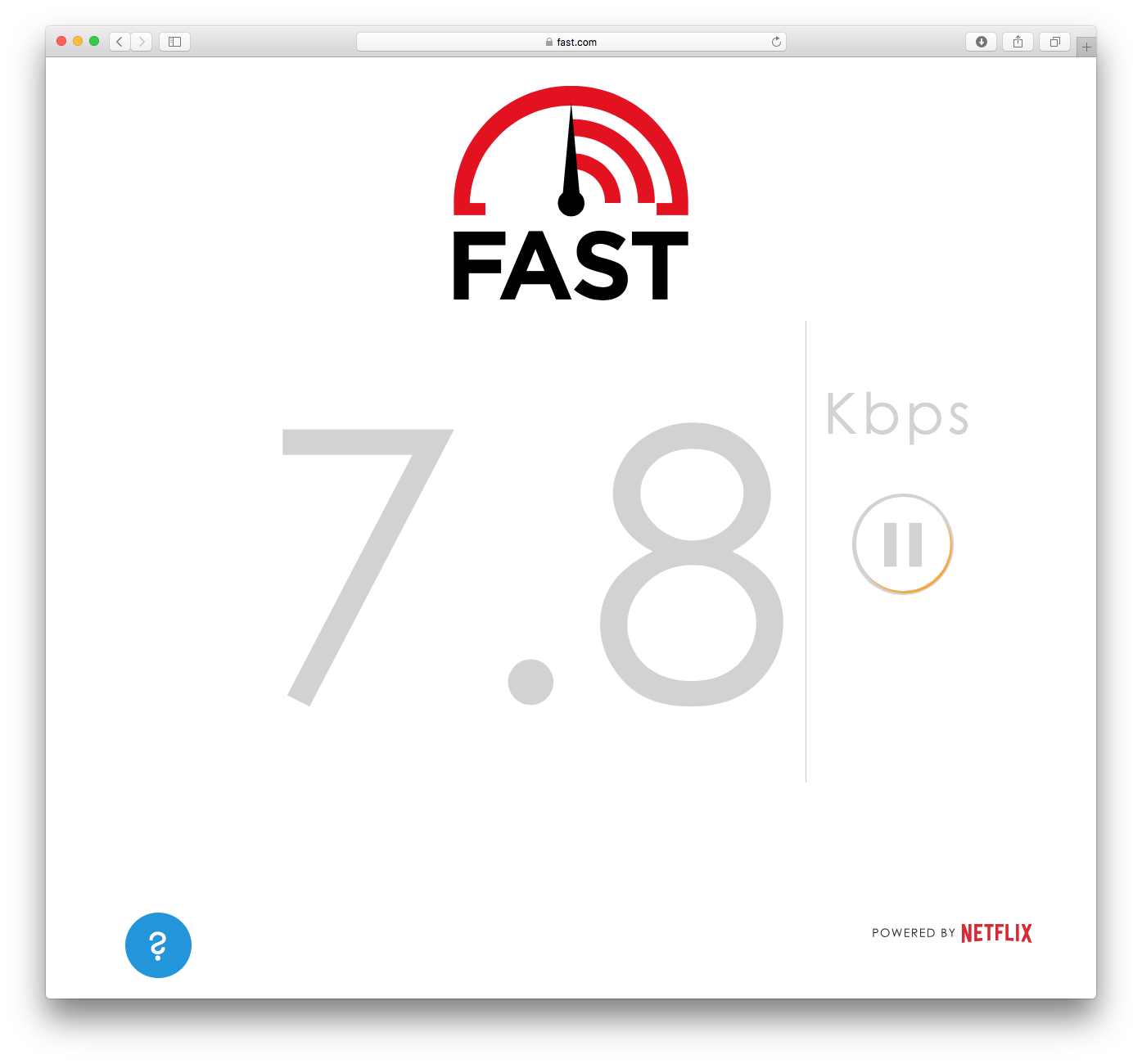 …while 10 seconds later, Netflix’s Fast.com shows 7.8 kbps: