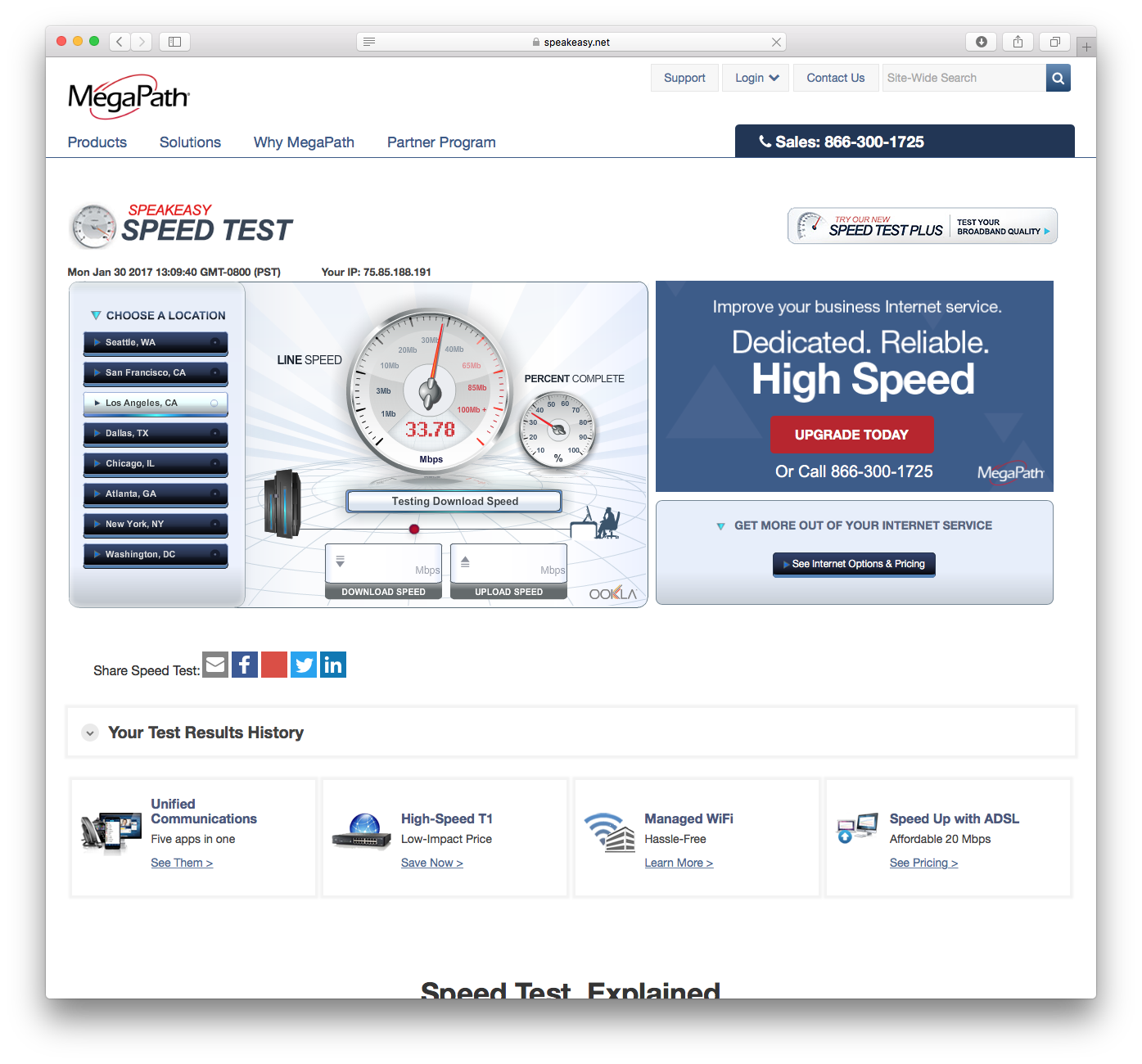 I’m a Time Warner Cable (TWC) cable internet subscriber. I pay ~$100 a month for whatever their fastest internet speed option is in my area. My Eero wifi router will regularly report speeds as high as 130 Mbps down and 30 Mbps up, which would be great.