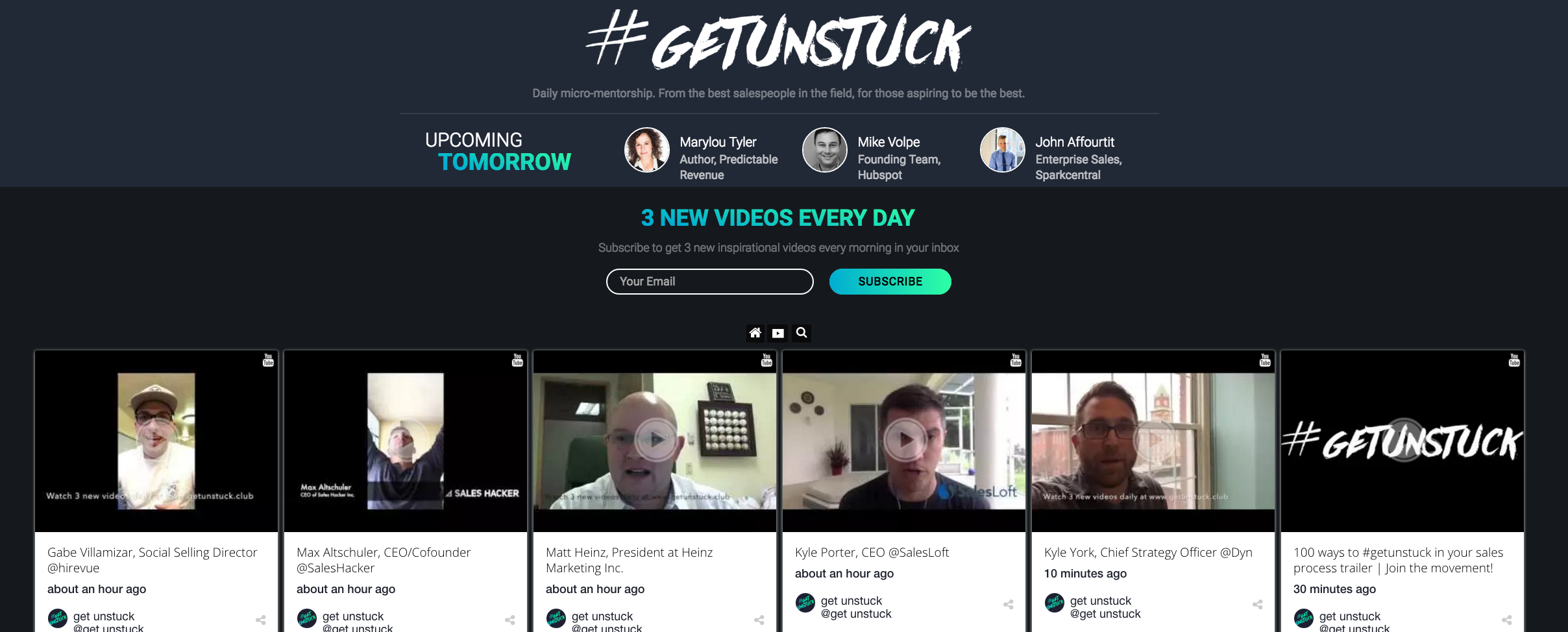 To amplify engagement, we’ll be facilitating a #getunstuck daily tweet discussion from @getunstuckdaily around the featured videos of the day.