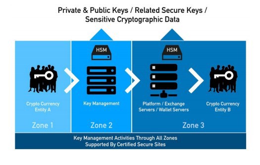 Their team review of various exchanges found that at present,most crypto currency exchanges and their related entities do nothas a standard and effective key management system that is equivalent toPCI compliance standards. Most of them are based on ad systemshoc that is open to being attacked by malicious hackers. They are also basedsoftware and not hardware based systems with HSM special (which is the practice and standard of PCI in general). Incident as the appropriation of Mt Gox highlights the dangers of implementing the system such ad-hoc security and we advocate that security feature refined from the Key Currency Management System of cryptocurrency (CKMS) to eliminate recurrence of similar events. Picture 4 shows various key management modules in the crypto currency ecosystem.