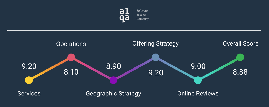 A1QA is no novice in the QA world — the company has 15+ years of experience in the field, and its portfolio consists of more than 1,500 successful projects. A1QA offers a variety of software testing services for web and mobile apps, as well as consulting, dedicated teams, full-cycle testing, and test automation.