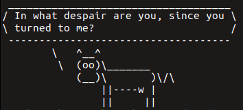 echo "In what despair are you, since you turned to me?" | cowsay