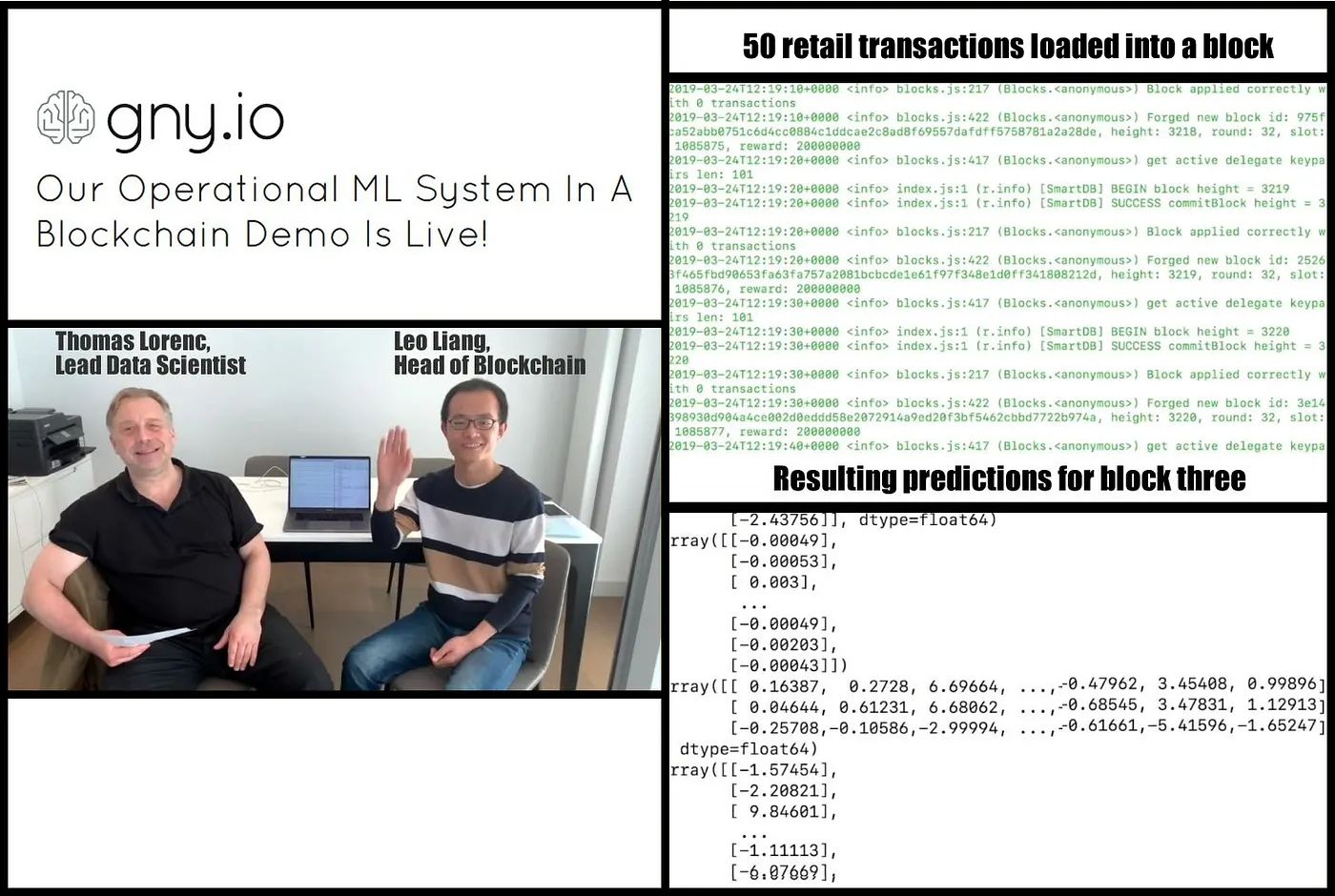 The team has released a demo that shows how this platform can predict groups of retail transactions through their powerful neural net, and a fully downloadable and customizable version of the platform is launching this Summer. GNY will have a library of selectable machine learning code sets that can be selected depending on the requirements of each individual and can be applied to their sidechain (as GNY will use Lisk’s sidechain technology).