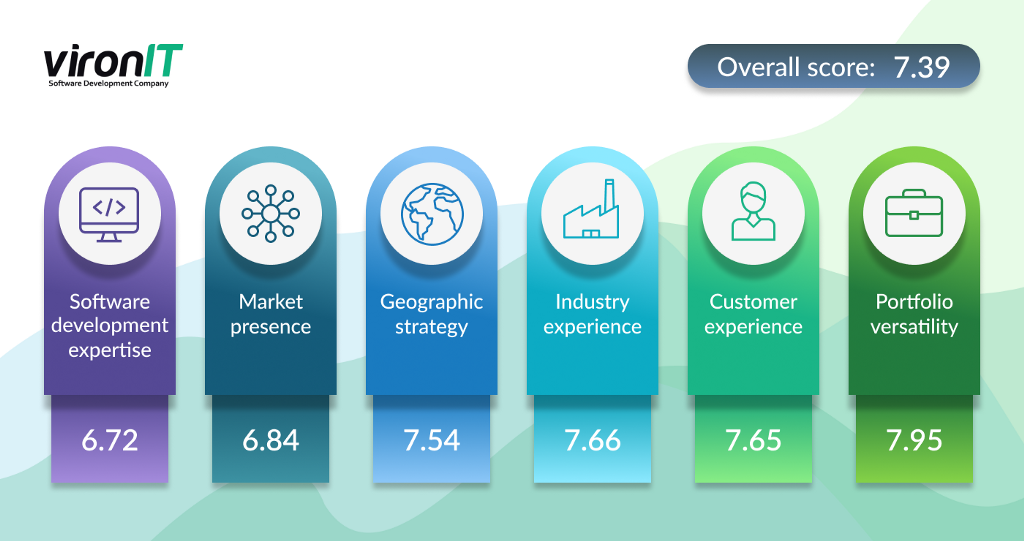In order to guide you through the world of custom software development providers, we have assembled the list of the most trusted small and medium-sized vendors that are specializing in middle and small scale custom software development projects. The companies were ranked according to 6 criteria: software development expertise, market presence, geographic strategy, industry experience, customer experience, and portfolio versatility.