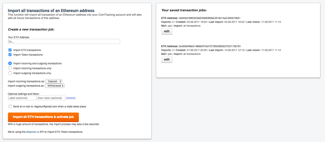 - Sync from my Ether Wallet Address (Using this primarily for ICOs)