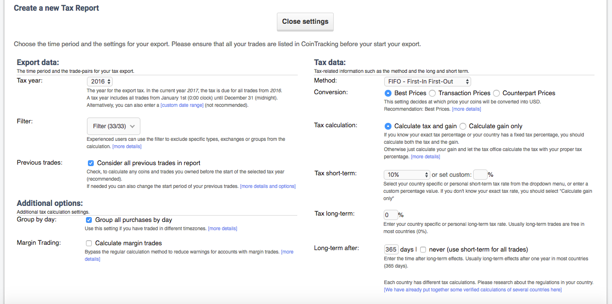 Yes you will need to pay your taxes on Cryptocurrencies gains. I am not sure if many are thinking about this right now but this can be a Herculean task. Looks like Cointracking has you covered here as well. With ability to configure various parameters for your tax reports I think this can come handy.
