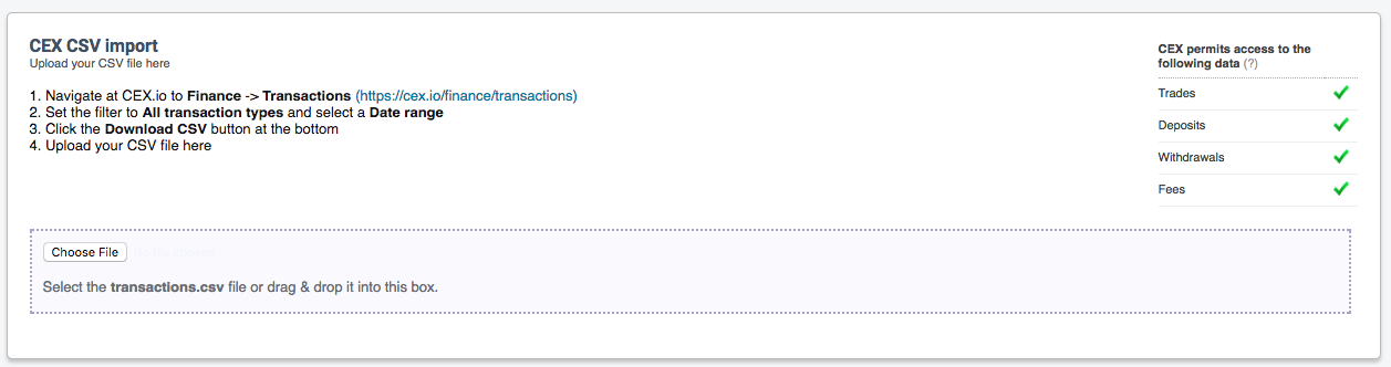 In my case CEX didn’t have an API and hence I had to go with exchange import option. Cointracking does a cool job of letting you know what kind of transactions are supported by the export provided by the exchanges. Keep an eye on this. Some exchanges doesn’t provide you details about deposits and withdrawals. This can have an effect on your summaries. You might need to keep track of those and create manual entries for those to keep your Dashboard upto date.