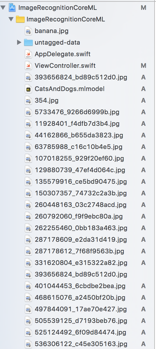 I already have an app setup which goes through a list of images and predict each image. Simply, drag and drop the model along with some untagged images and you are good to go. I went back to the ImageNet and downloaded a separate dataset which contained images of dogs and cats. I did that because I did not wanted to use the same dataset which was used to train the model. Here is the screenshot of several images added to the Xcode project for testing the new model.