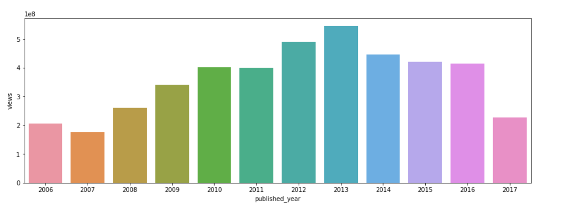 According to views, it peaked in 2013 and crashed hard in 2017. Even can say TED returned back to it started. I think the rise in 2012 and 2013 occurred by means of Amy Cuddy with 43.1 million viewed speech and TED lived its most popular times.