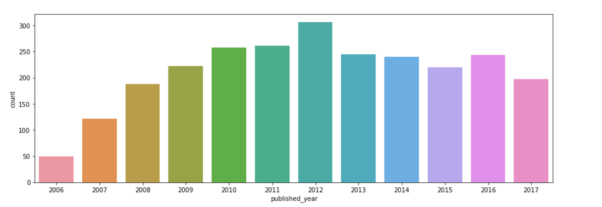 plt.figure(figsize=(15,5))sns.countplot(df["published_year"])plt.show()