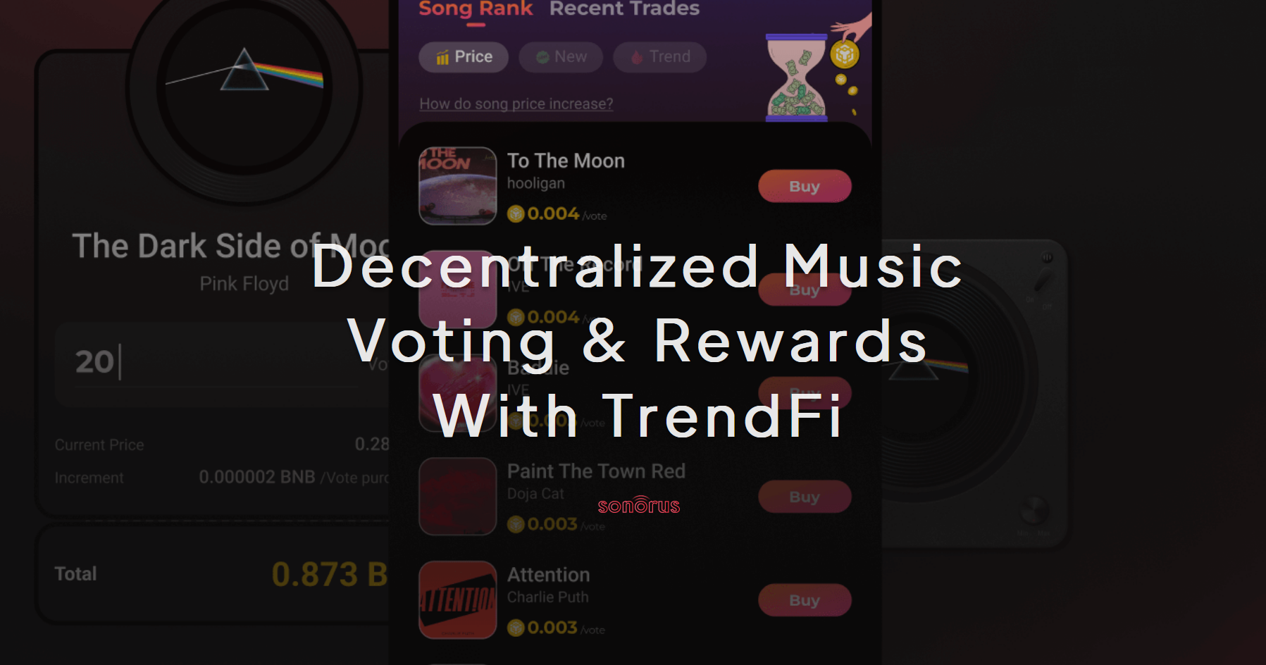 TrendFi is the innovative mechanism launched by Sonorus, allowing fans to actively discover and share new music. TrendFi represents the instrument making Sonorus' vision a reality, where music charts reflect the community's collective voice. The platform goes beyond the classic passive listening experience and encourages active participation through voting for favorite tracks.