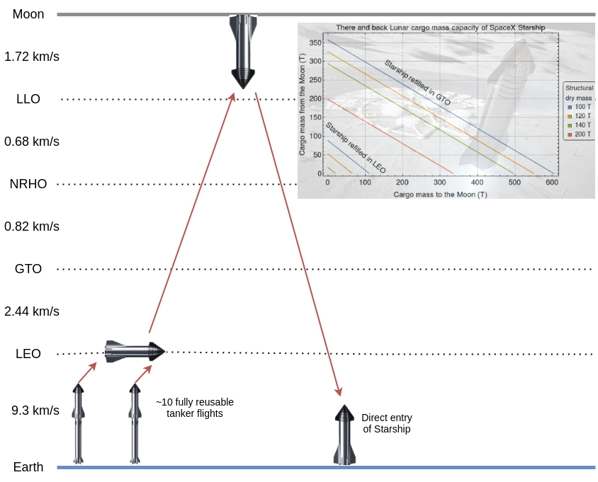 Of course, it is possible to refuel Starship in near-lunar orbit and then return it to our planet. But that would require many additional Starship tanker flights. To send one fuel tanker to the Moon, it would have to be refueled in Earth's orbit.
