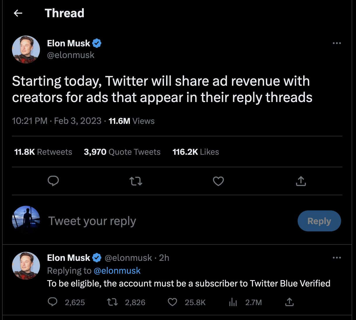 Twitter, one of the largest social media platforms, has recently made a major announcement regarding its revenue-sharing program. According to a tweet from Elon Musk, the CEO of Tesla and SpaceX, Twitter will now be sharing ad revenue with content creators for advertisements that appear in their reply threads.