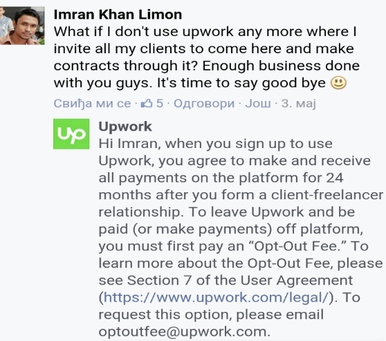I honestly thought it would be as simple as that. It didn’t take too much time to create an account on Upwork. It would take even less to terminate one. Oh boy, I was in for a nasty legal surprise. It all started with one message I stumble upon an official Upwork’s Facebook page. It turned out I wasn’t the only one who wanted to leave.