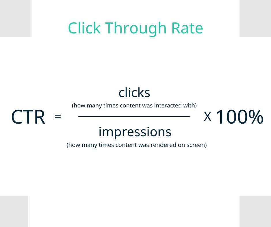 CTR (Click Through Rate) = clicks / impressions * 100(%)