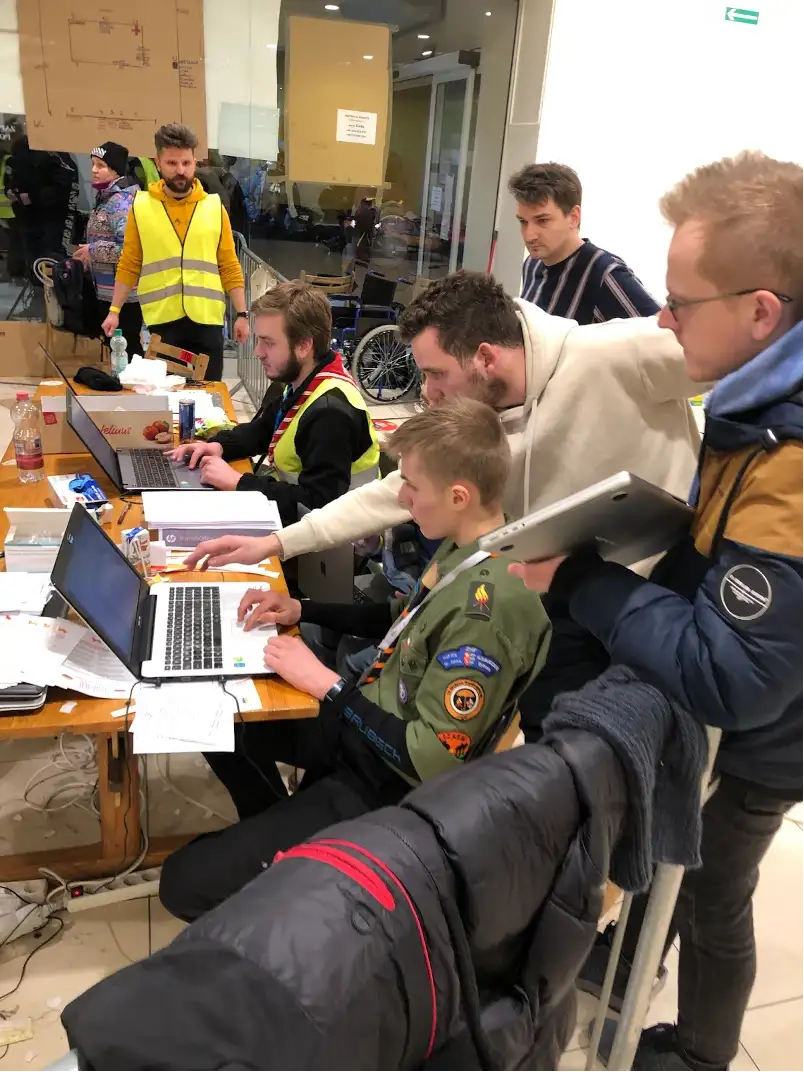 While Vlad, Anton, and I were at the Ukraine/Poland border, every day we posted our progress on our slack: reports, pictures, videos. This created so much visibility and alignment on what was going on, that many folks were willing to join and help. As a result, every week new folks from my company flew to different camps to replicate the flow that we had built and to create many new solutions: medicine inventory, bed management system, supply, and more.