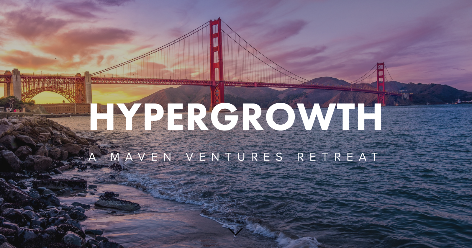 We’re excited to announce our inaugural Hypergrowth Retreat on September 23rd in the Presidio of San Francisco. At this exclusive event, attendees will learn how to take their startup from growth to hypergrowth to billion dollar exit from the Maven team and our speakers — an incredibly talented group of the top experts in scaling consumer software businesses. We’ll focus on practical tips and tactics about consumer growth hacking, viral marketing, and network effects that will have immediate impact.