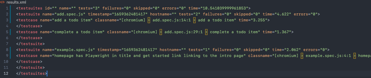 reporter: [ ['junit', { outputFile: 'results.xml' }] ],