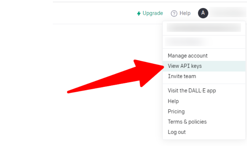 - Then, click on your profile icon in the top right to display the options and select “View API keys”.