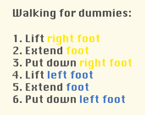 In fact, we rarely write good policies manually. This is either because we don’t know any (e.g. complex task), or because they are often not robust (if the agent somehow starts with the left foot up, the policy above would immediately fail as the agent cannot execute the desired action).