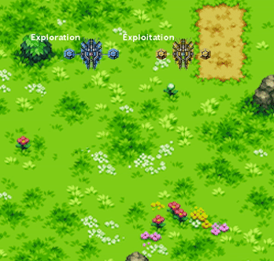 To learn the Q-Values of its State-Action pairs, Henry must try these actions by himself. The problem is that there might be billions of possible combinations, and the program cannot try them all. We want Henry to try as many combinations as possible, but focus on the best ones.