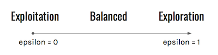 By playing on the value epsilon, we are facing the dilemma of Exploration vs Exploitation. An agent with a high epsilon will mostly try random actions (exploration), while an agent with a low epsilon will rarely try new actions (exploitation). We need to find a sweet spot that will enable our robot to try many new things, without wasting too much time on unpromising lead.